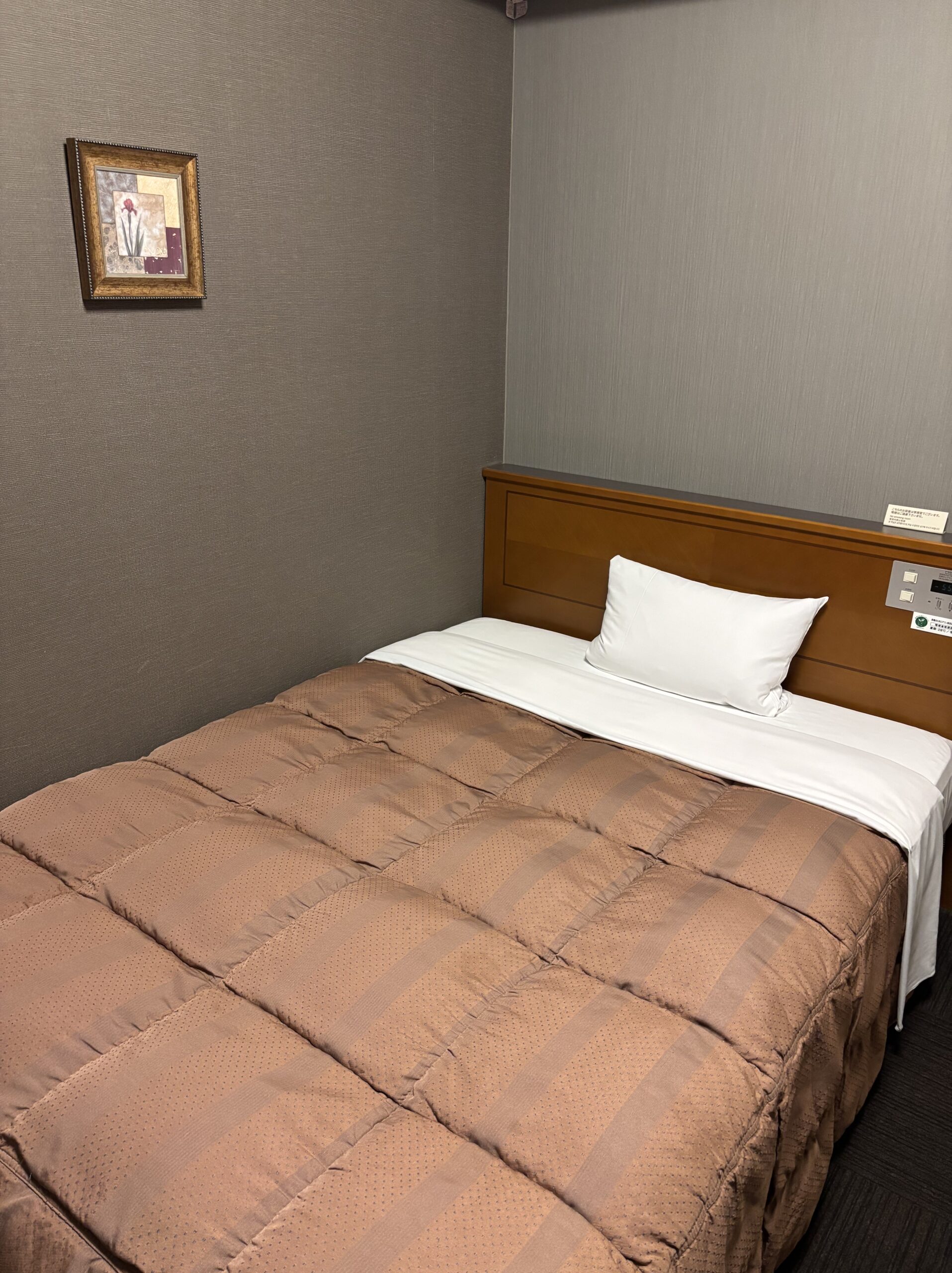 固めのベットでしたが、家のベットより疲れ取れた!コンセントはベットの上についてて不満なし!