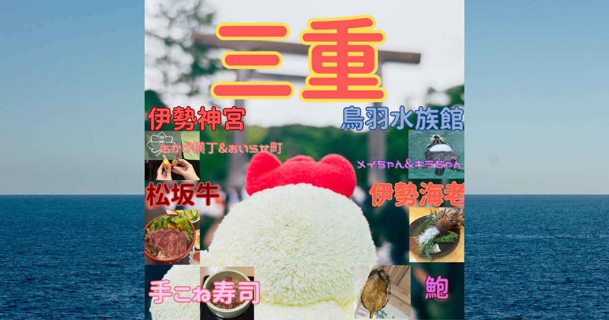 今回は三重県、伊勢・鳥羽・松坂を巡る旅です。(久々に一人旅じゃない!)最近東京グルメのインスタも盛り上がってきた黄色いニワトリ(案件もちょくちょく来るようになって嬉しすぎる♡)