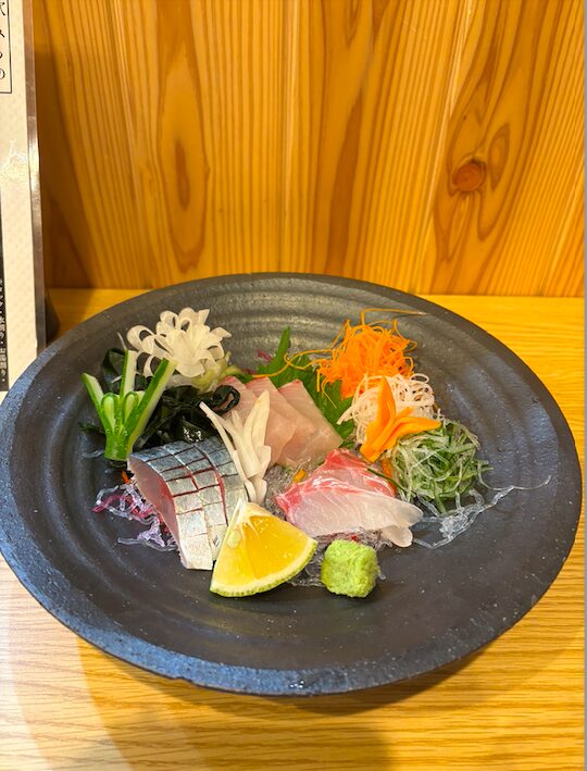 「関サバ食べてみたい」って言ったら、刺身盛りの魚を関サバの〆さばにして出してくれたよ♡
