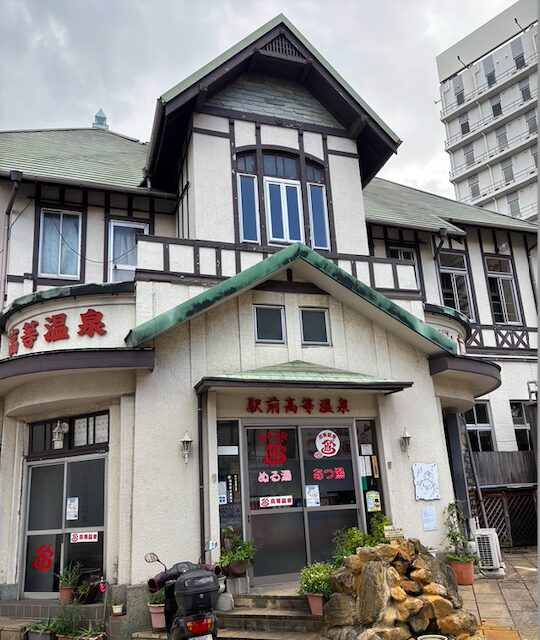 別府のランドマーク的存在のジモ泉です。道後温泉本館を思わせる建築ですね。コインロッカーありなので、入ります!