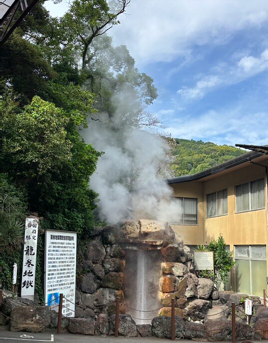 The 別府の湯けむりは鉄輪地域から見えるそうですが、時間が無いので、バスの車窓から見るだけで終了。